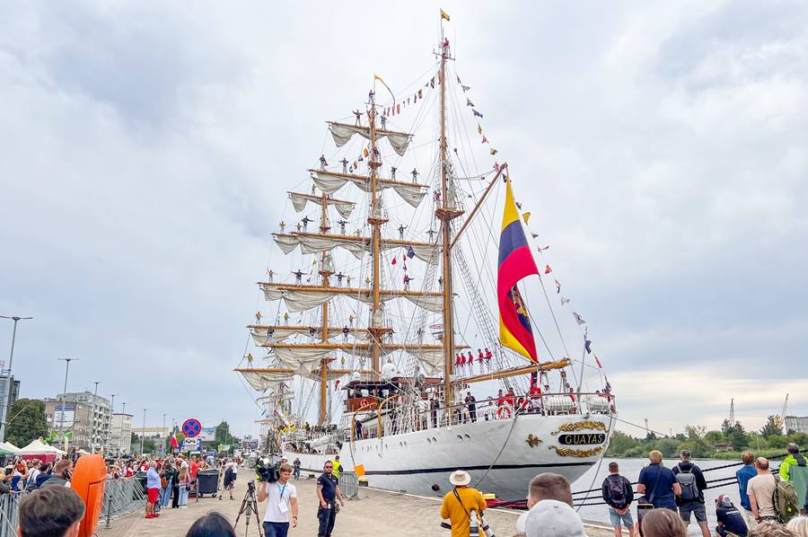Pod statkiem zebrało się koło stu szczecinian i turystów, na których twarzach rysowała się niezwykła radość i euforia. W końcu niecodziennie można u siebie spotkać przybyszy z Ameryki Łacińskiej, a ci niezwykle się cieszyli z kontaktu z polską ziemią.